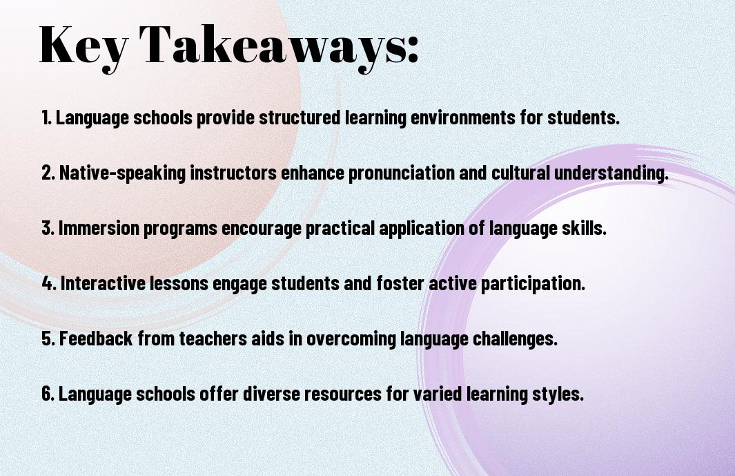 Presently, you can see that language schools play a significant role in your fluency development. You will find that enrolling in a language school helps you achieve your goals, as your skills improve with practice and interaction. Your progress is supported by qualified instructors and a structured curriculum, allowing you to become a proficient speaker. By leveraging these resources, you can enhance your language skills and move closer to fluency.