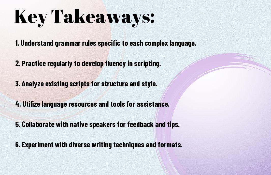 As you commence on learning to write scripts of complex languages, you’ll encounter unique challenges that test your cognitive abilities and linguistic skills. Your journey will require dedication and persistence, but with the right approach, you can overcome these hurdles and achieve proficiency. You will need to develop a deep understanding of the language’s syntax, grammar, and writing system to produce coherent and accurate scripts, and this blog post will guide you through the process.