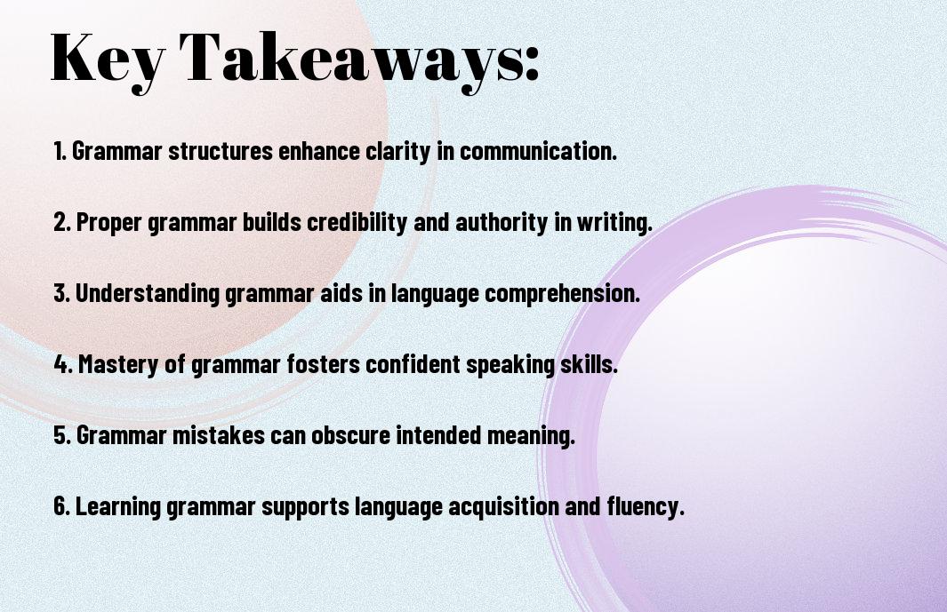 As you strive to become proficient in a language, you will realize that your understanding and use of grammar is vital to effective communication. Your ability to construct sentences, convey meaning, and express yourself accurately depends on your grasp of grammatical rules and principles. You will find that mastering grammar helps you to better comprehend and appreciate the language, enabling you to express your thoughts and ideas with clarity and precision, which is vital for successful communication in both personal and professional settings.